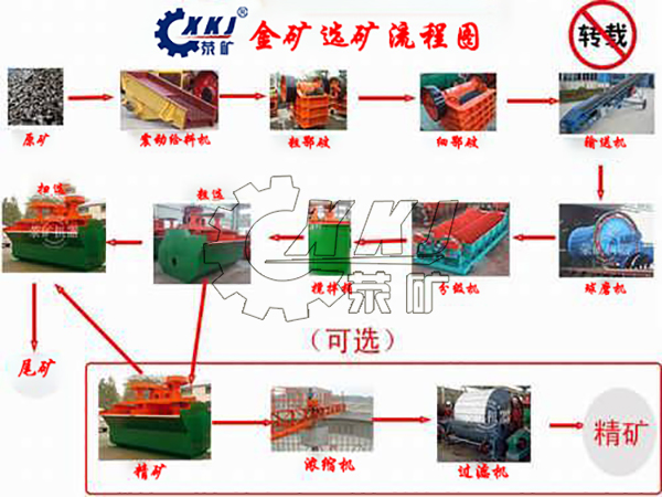 河南省荥阳市矿山机械制造厂此次配置的日产200吨金矿选矿设备设备采用了的干湿联合选矿浮选工艺流程方法。用电磁分离法除去铁质杂质。工艺过程顶用水量少,节省水,降低本钱,减少污染,矿石利用率可达90%。