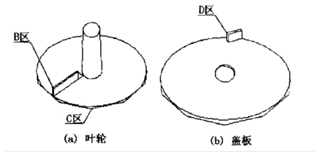 由于矿浆压力分布、运动方向、流速不同,叶轮、盖板各个部位的磨损情况差异很大。叶轮和盖板的磨损也不同。叶轮的磨损主要发生在叶轮的外沿迎流面(B区)、圆盘的外沿~(C区)、圆盘的底部。圆盘底部矿浆流速高,且与矿浆的相对速度高,流线方向由与叶轮跟随方向转变为与盖扳隔栅平行的方同,这流向的改变,使矿浆对B区产生磨损,首先是上沿的直角被磨掉,然后向下发展。C区磨损由矿浆与圆盘相列运动引起,也可能与间隙过小的假底磨擦引起。当然,离中心越远,圆盘与矿浆的相对速度越高,由此引起的磨损越大。盖扳的磨损主要生在隔栅内沿(D区),该区矿浆流向发生强制变化,内沿受强烈的冲击,产兰月牙型磨损。